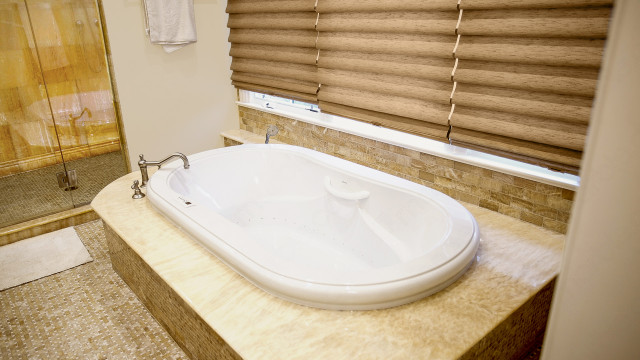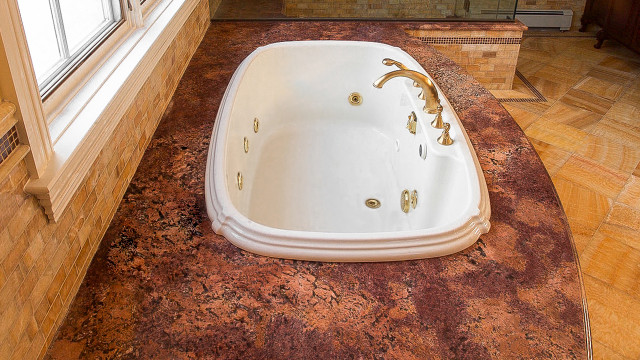 This beautiful hot tub makes a statement surrounded by Blue Fire granite with a Half Bullnose Edge. Colors swirl through...