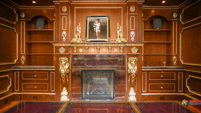 Save Photo Violet Bamboo Quartzite Fireplace This Violet Bamboo Quartzite fireplace is the perfect inset for this ornate room. The room features gold embellishments and molding... Photos: 2