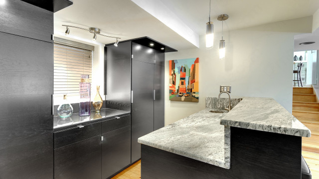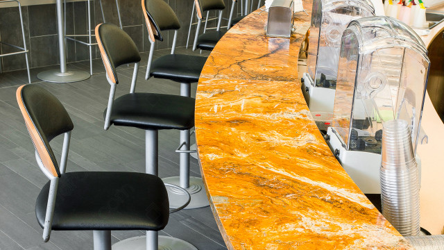 Save Photo Madura Gold Granite Bar This ultra-modern bar is brought together by Madura Gold granite counter tops with 1/4 Round Edge. The kitchen bar is... Photos: 2