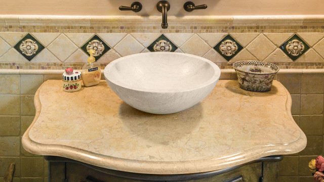 Bathrooms Your bathroom vanity can get a natural stone top. Here you can see examples of marble, granite, limestone and more. Albums: 40